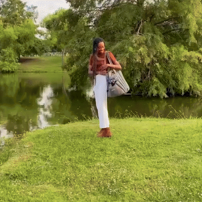 Increase the bag’s width and comfort by attaching the front leather handle to the bottom. Use the side pockets for storing toys and treats.
